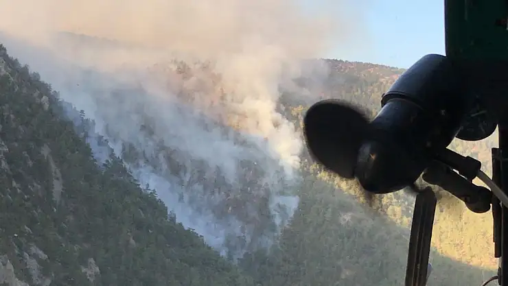 Yangın, akşam saatlerinde ilçeye bağlı Aksaağaç Mahallesi'nde ormanda, henüz bilinmeyen nedenle çıktı. İhbar üzerine bölgeye Orman Bölge Müdürlüğü'ne bağlı 18 arazöz, 8 su tankı, 1 dozer, 4 helikopter, 3 uçak ile çok sayıda personel sevk edildi. Ekiplerin yangına havadan ve karadan müdahalesi devam ediyor.