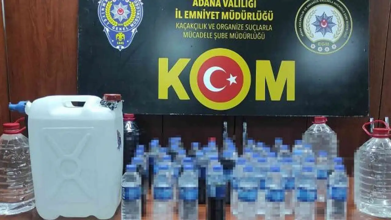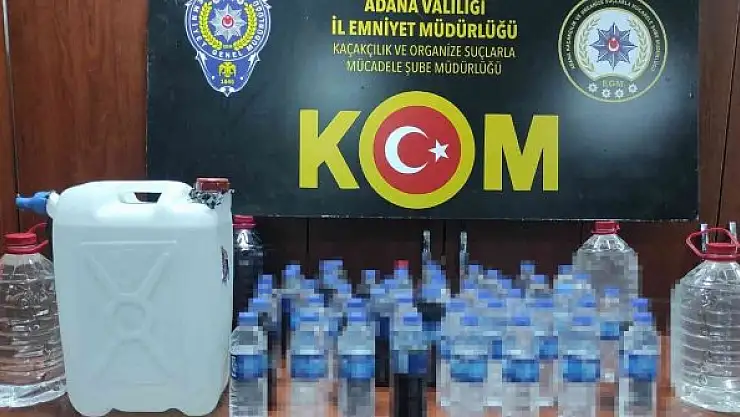 Adana'da düzenlenen sahte içti operasyonunda 250 pet şişe ile bidon ve damacanalarda bin 485 litre içki ele geçirildi.