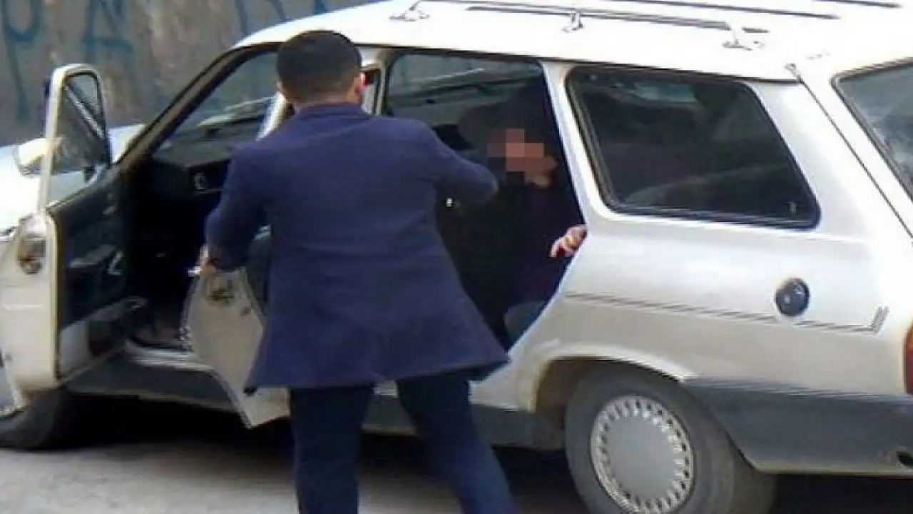 Nişanlı olduklarını iddia eden çift park ettikleri arabanın yanına gelerek sokak ortasında tartıştı. Adamın kadına bağırarak küfürler edip arabaya bindirmeye çalışmasına çevredeki bir kadın bağırarak tepki gösterdi