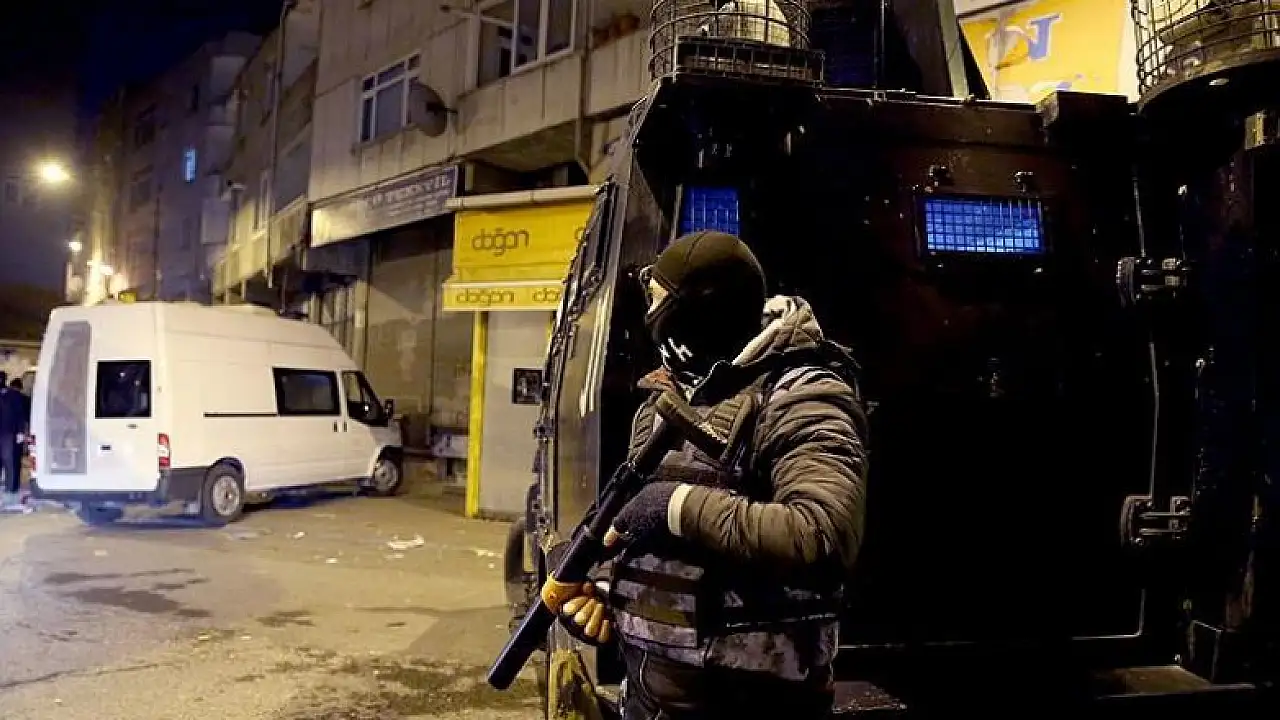 Özel Harekat polislerinin de destek verdiği operasyonda ekipler, "koçbaşı" ile kapılarını kırarak girdikleri evlerde arama yaptı.
