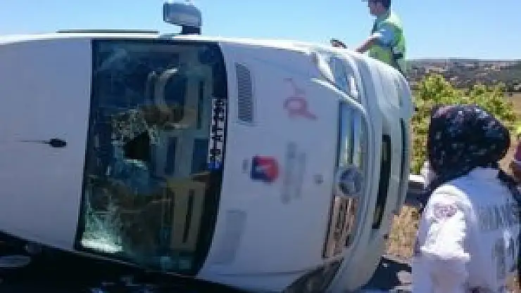 Çarpmanın etkisiyle şerit değiştiren ve devrilen minibüsteki öğrencilerden biri ağır olmak üzere 14’ü yaralandı.