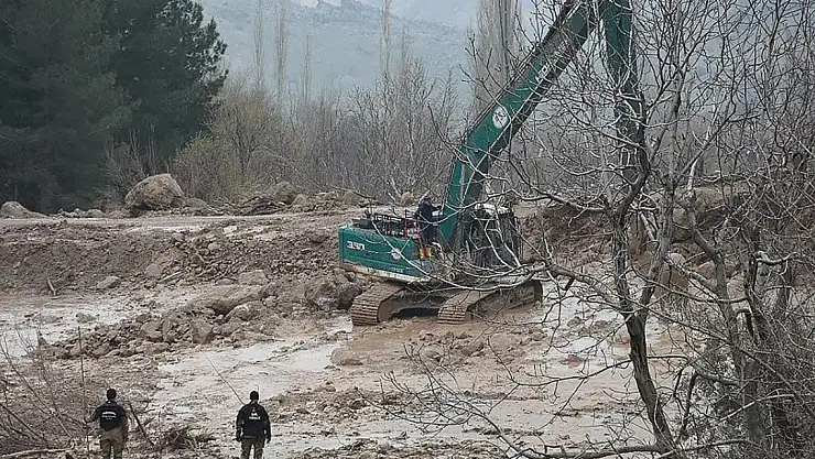 DSİ ekiplerinin de yoğun çaba gösterdiği çalışmada iş makineleriyle selin getirdiği balçık ve moloz yığını temizleniyor.