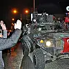 Adıyaman'ın Gölbaşı ilçesinde vatandaşlar, Suriye sınırına konuşlu birliklere takviye amaçlı gönderilen zırhlı araç sevkiyatı sırasında askerlere sevgi gösterisinde bulundu