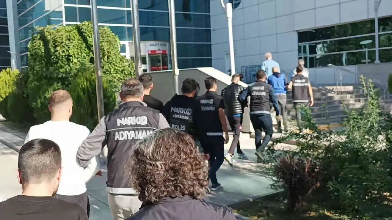 Edinilen bilgilere göre, Adıyaman Cumhuriyet Başsavcılığınca yürütülen uyuşturucuyla mücadele soruşturmaları çerçevesinde önceki gün Narkotik Suçlarla Mücadele Şube Müdürlüğü ekiplerince 7 farklı adrese eş zamanlı operasyon yapılmıştı. Düzenlenen şafak operasyonunda gözaltına alınan M. D., M.D., D.D., M.R.B. ve Ö.E., E.T., ve E.Ç., emniyette tamamlanan ifadelerinin ardından adliyeye sevk edildi. Burada mahkemeye çıkarılan M. D., M.D., D.D., M.R.B. ve Ö.E., tutuklanarak cezaevine gönderilirken E.T., ve E.Ç., adli kontrol şartıyla serbest bırakıldı.