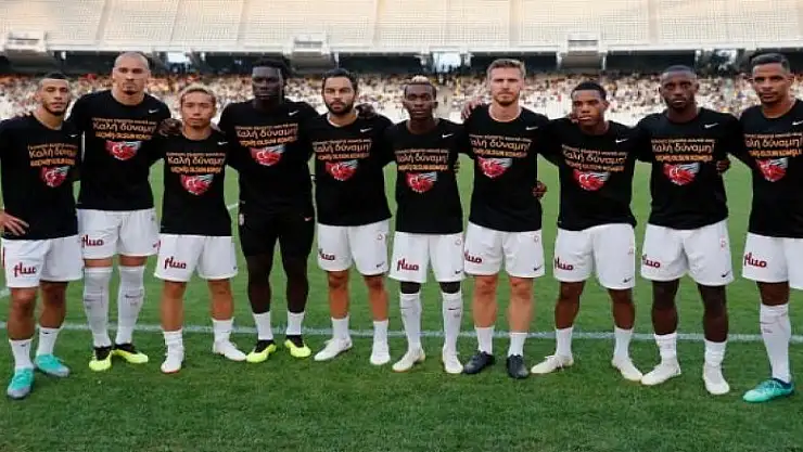 Galatasaraylı futbolcuların Atina yakınlarında 90'dan fazla kişinin ölümüne sebep olan yangın felaketiyle ilgili Yunanca "Komşu yanınızda" ve Türkçe "Geçmiş olsun Komşu" yazılı tişörtlerle çıkmasına AEKKulübünden teşekkür geldi.
