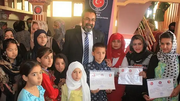 Afganistan'ın Mezar-ı Şerif kentinde Türk İşbirliği ve Koordinasyon Ajansı Başkanlığı (TİKA) tarafından 6 ay önce açılan Türkçe ve meslek edindirme kursunu bitiren öğrenciler sertifikalarını aldı.