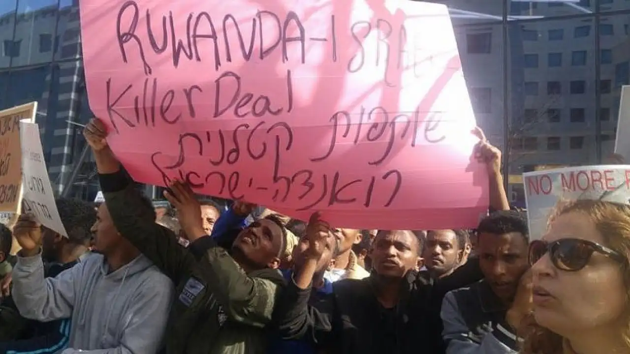 The protesters -- the majority of whom are Eritrean and a few from Sudan’s Darfur region -- called on Rwandan authorities to cancel any agreement with Israel for the forcible deportation of African asylum seekers from the country.
