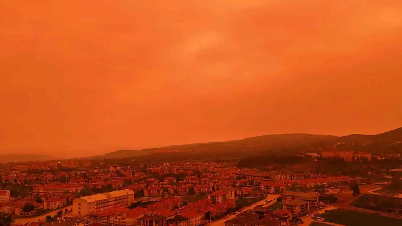 Afrika üzerinden gelen toz taşınımı nedeniyle Bolu'da gökyüzü kırmızı, mor ve sarı renklerine büründü.