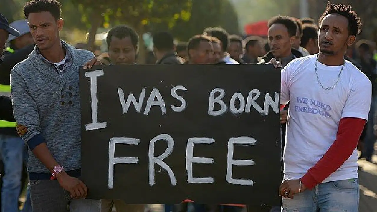Aralarında Eritre, Kongo, Sudan ve Etyoplalıların bulunduğu kalabalık grup ''Ne istiyoruz?, Özgürlük!'' şeklinde slogan attı. Belediye binasının önündeki demir parmaklıklara yüklenen eylemcilerle İsrail polisi arasında kısa süreli bir gerginlik yaşandı.