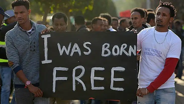 Göçmenlerin yoğun olarak yaşadığı Levinsky Parkı'nda toplanan binlerce Afrikalı, üzerinde İngilizce ''Biz insanız'', ''Özgür olmak istiyorum'' ve ''Suçlu değil, mülteciyiz'' yazılı pankart ve dövizlerle Tel Aviv Belediyesinin bulunduğu Rabin Meydanı'na geldi.