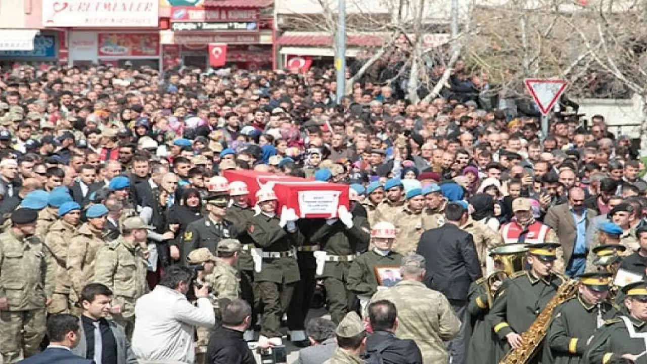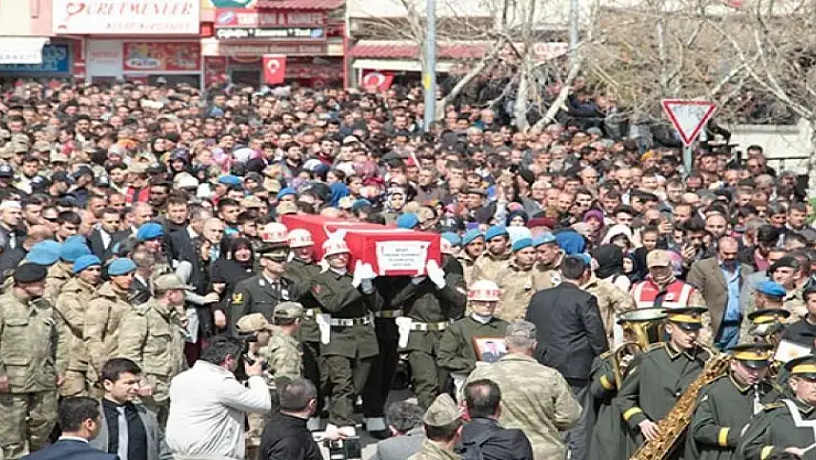 Şehidin silah arkadaşlarının da geldiği törene katılan binlerce kişi, dualar eşliğinde tekbir getirip, "Şehitler ölmez, vatan bölünmez" sloganı attı.