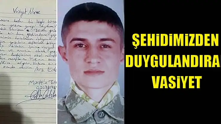 Afrin'de yürütülen Zeytin Dalı Harekatı'nda teröristler tarafından tuzaklanan el yapımı patlayıcının patlaması sonucu şehit olan Piyade Sözleşmeli Er Muhittin Talha Çalışkan'ın el yazısı ile yazdığı vasiyet ortaya çıktı.
