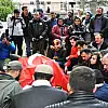 "Biz de takım olarak böyle acılı bir günde ailenin yanında olmak istedik. Takım izinde olduğundan cenazeye katılamamıştık. Bundan dolayı çok üzgünüz. Bugün hem o görevimizi hem de şehidimizin vasiyetini yerine getirelim diye burada toplandık. Elimizden geldiğince yardımcı olmaya çalıştık. Acı büyük... Sözlerin kifayetsiz kaldığı bir ortamı yaşıyoruz. Allah rahmet etsin. Taraftarlarımızın hepsi başımızın tacı. Bir şehit taraftarımızın olduğunu öğrendik. Şehidimizin ailesi bize emanet, kızı kızımız, eşi kız kardeşimiz. Onlar için elimizden gelen her türlü desteği vereceğiz. Vasiyeti için futbolcularımız gereken cevabı verdi. Şehidimizin kabrini önümüzdeki sezon şampiyon olduktan sonra tekrar ziyaret etmeye geleceğiz."