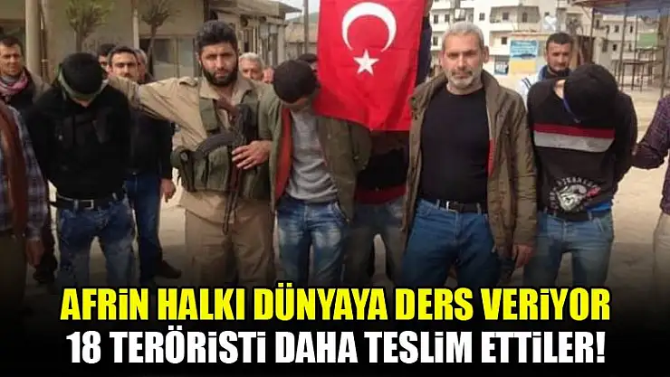 Afrin halkı her zaman olduğu gibi Türk Silahlı Kuvvetlerinin yanında. Dün Afrin'de teslim edilen 3 teröriste ilave olarak, 9 köyde 18 terörist muhtarlar ve halk tarafından Türk Silahlı Kuvvetlerine teslim edildi. TSK dün de 3 teröristin teslim edildiğini belirterek fotoğraflar paylaşmıştı...