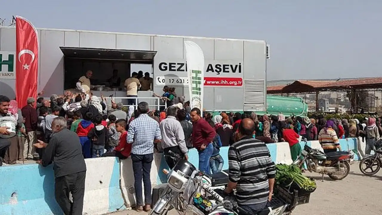 İHH tarafından kurulan gezici aşevinde ihtiyaç sahibi siviller için günlük 10 bin kişilik sıcak yemek çıkartılıyor.