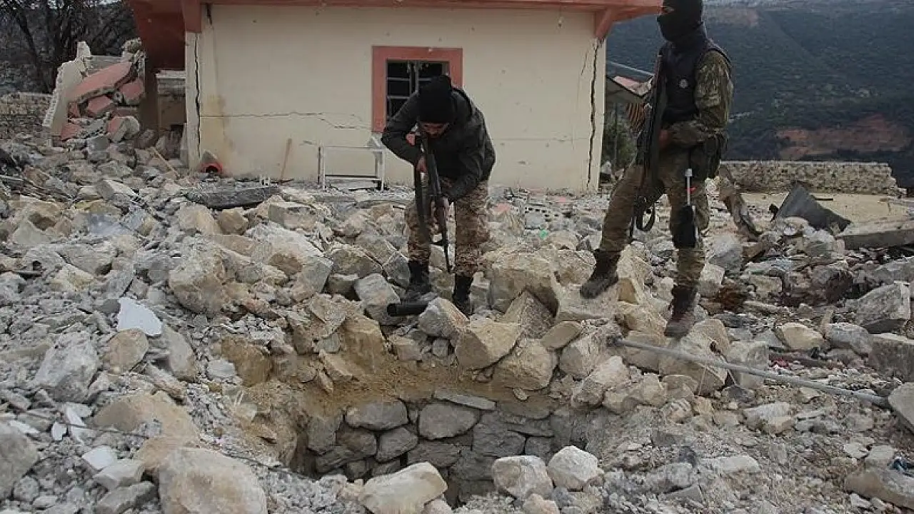 Terör örgütüyle şiddetli çatışmalar sonucu ele geçirilen Şedya köyünün çevresindeki hakim tepelere inşa edilen beton gözetleme kuleleri ile korunganlı mevzilerden giriş yapılan ve birçok tünelin birbirine bağlandığı tünel sistemi, ÖSO tarafından güvenlik taramasından geçirildi.