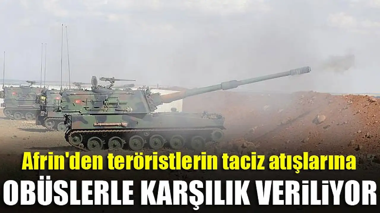 Afrin'den teröristlerin taciz atışlarına obüslerle karşılık veriliyor