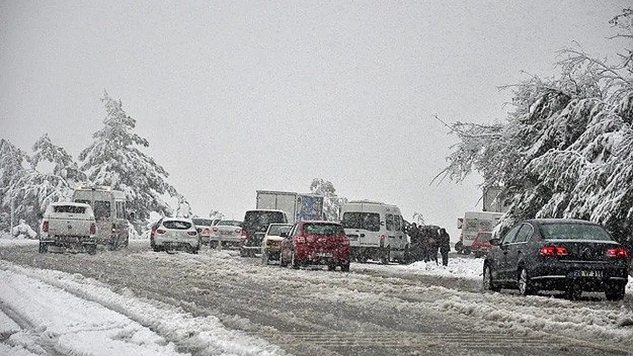 Kar lastiği olmayan bazı araçlar yolda kaldı, Karayolları ekipleri de kar küreme ve tuzlama çalışması yaptı.