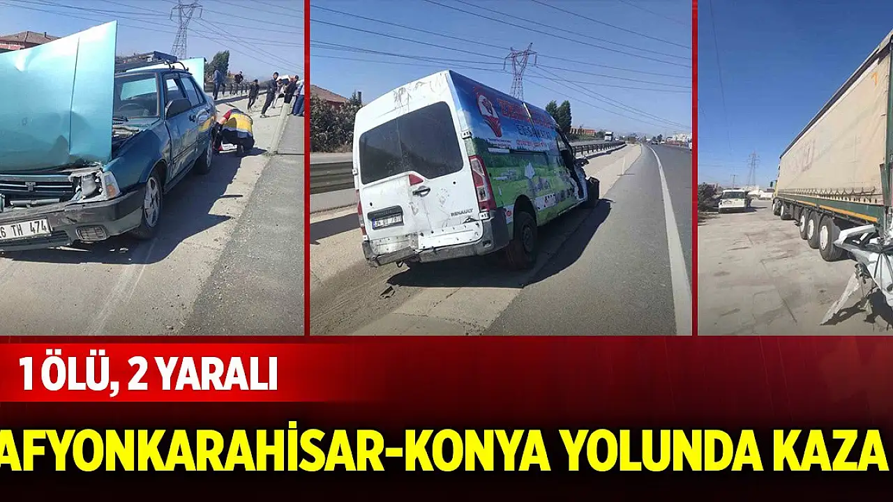 Afyonkarahisar-Konya kara yolunun 18. kilometresinde kamyonet, tır ve otomobilin karıştığı trafik kazasında 1 kişi yaşamını yitirdi, 2 kişi yaralandı.