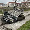 Afyonkarahisar'da kontrolden çıkarak karşı şeride uçup ardından refüje girip takla atan otomobildeki 2 kişi yaralandı.