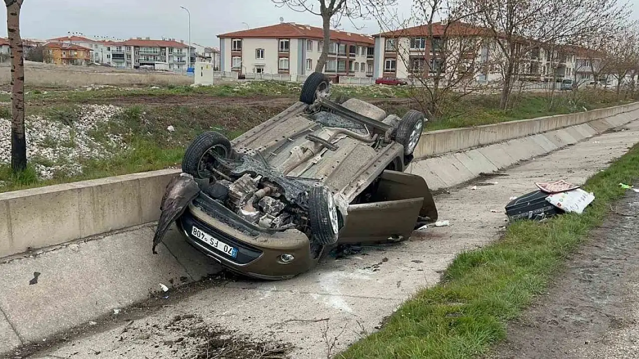 Kaza, Afyonkarahisar-Konya kara yolu Fatih Havaalanı girişi yakınlarında saat 14.30 sıralarında meydana geldi. Edinilen bilgilere göre, Y.B. idaresindeki 70 FS 408 plakalı otomobil, sürücüsünün direksiyon hakimiyetini kaybetmesiyle bulunduğu şeritten karşı şeride geçerken farklı bir araca daha zarar verdi, ardından refüje takla atarak uçtu.