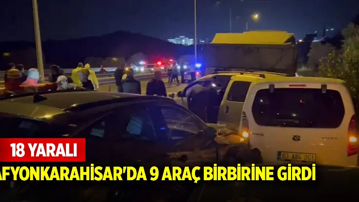 Afyonkarahisar'da 9 aracın karıştığı zincirleme trafik kazasında 18 kişi yaralandı.