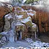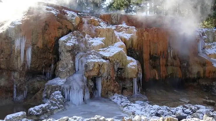 Afyonkarahisar'ın Sandıklı ilçesinde kaplıcalar bölgesindeki termal suyun aktığı Şifa Şelalesi soğuk hava nedeniyle dondu.