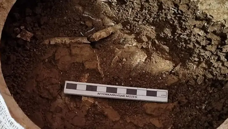 Afyonkarahisar'da temel kazısında bulunan lahitteki 4 çömlekten insan kemiği çıktı
