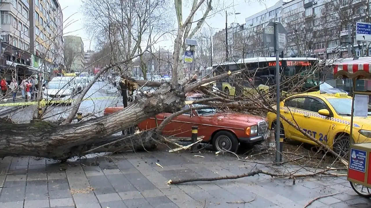 FATİH'te doğal nedenlerle devrilen bir ağaç, 2 aracın üzerine düştü. Araçlarda maddi hasar meydana gelirken, can kaybı ya da yaralanan olmadı.