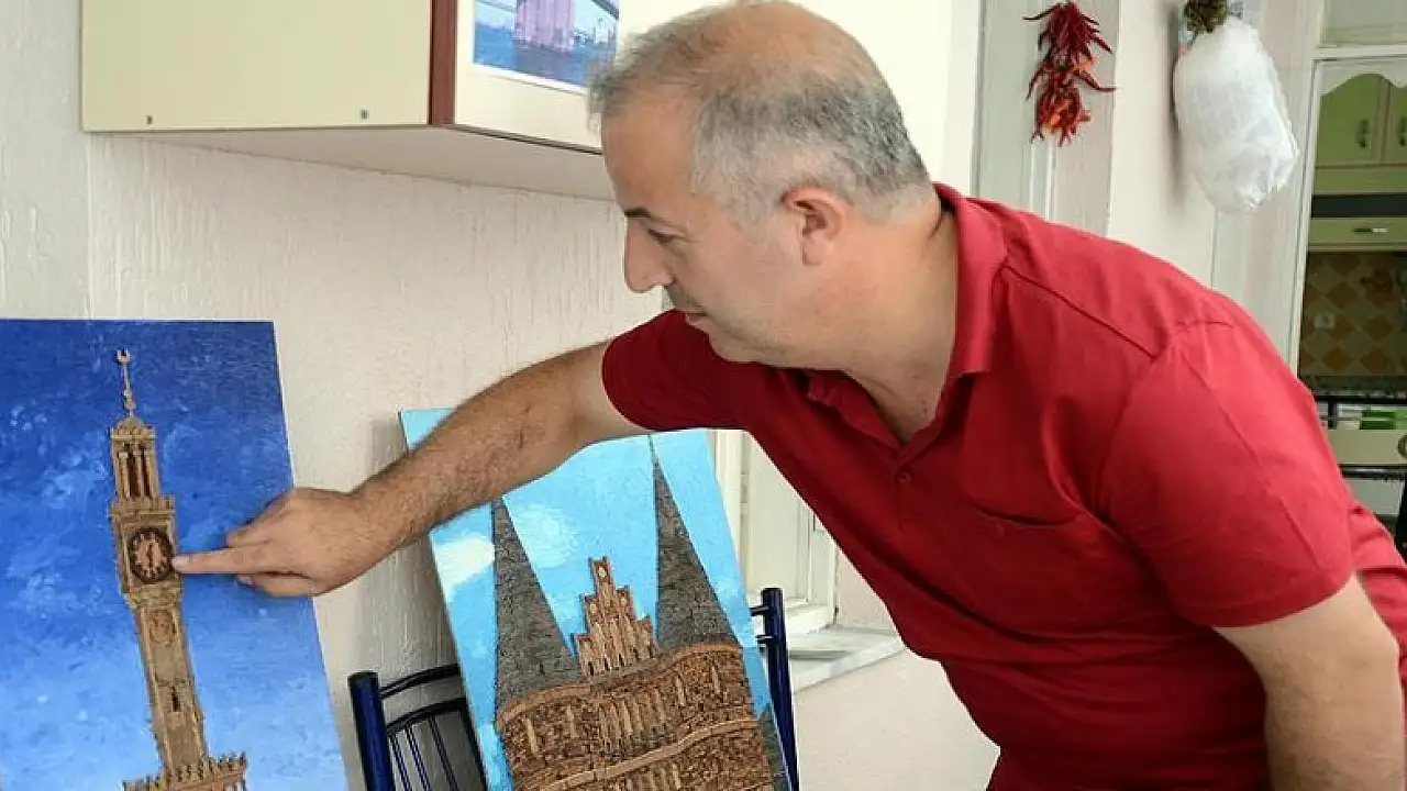 Zonguldak'ta topladığı ağaç kabuklarını atölyeye çevirdiği evinin balkonunda işleyen madenci Cevdet Özdemir'in çeşitli figürleri resmederek ürettiği tablolar görenlerin beğenisini kazanıyor.