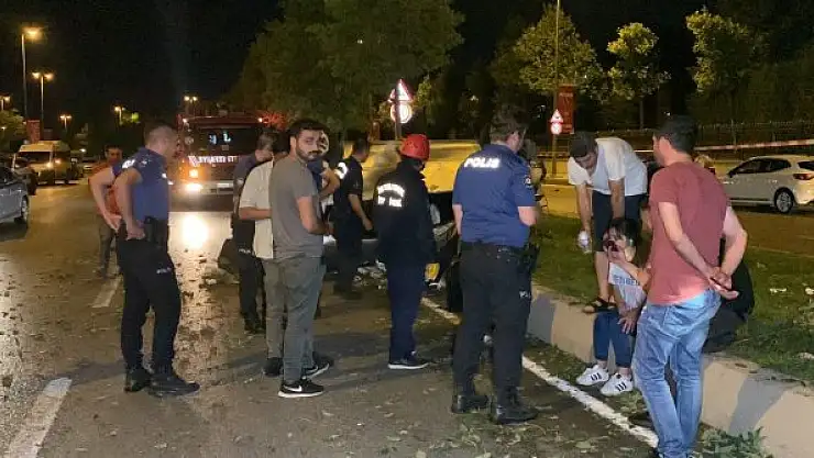 İSTANBUL KARTAL'da orta refüjdeki ağaçlara çarparak takla atan otomobilin karıştığı kazada, 2 kişi yaralandı.
