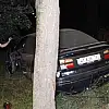 Ağaca çarpan otomobil, toprak zemine girerek durabildi
