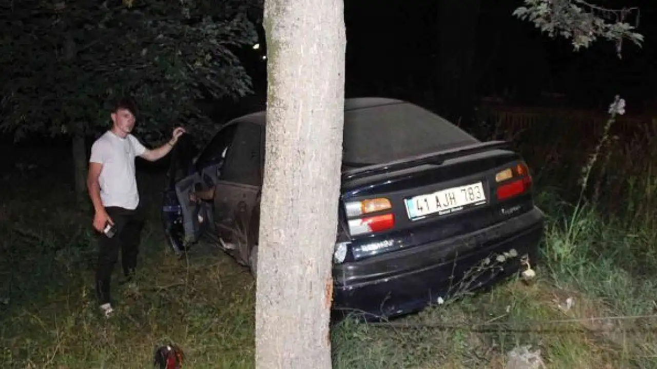 Kocaeli'de sürücüsünün direksiyon hakimiyetini kaybettiği otomobil ağaca çarptı.
