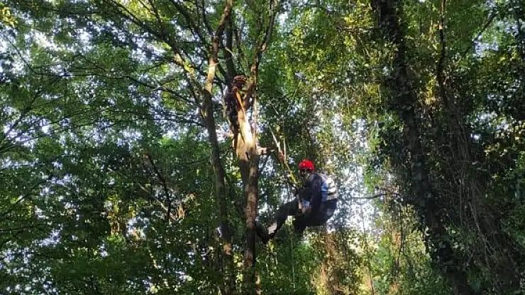 Ağaca takılan yamaç paraşütçüsünü AFAD ekipleri kurtardı