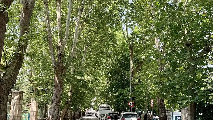 Eskişehir'de bir sokakta, ağaçlardan oluşan tüneli andıran manzara görenleri mest ediyor.