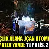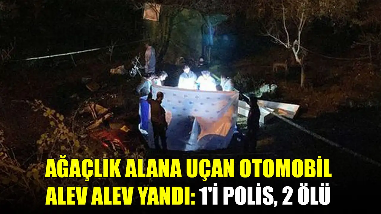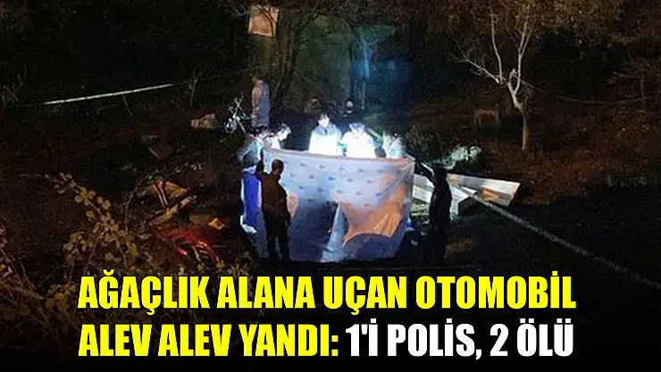 Ağaçlık alana uçan otomobil alev alev yandı: 1'i polis, 2 ölü