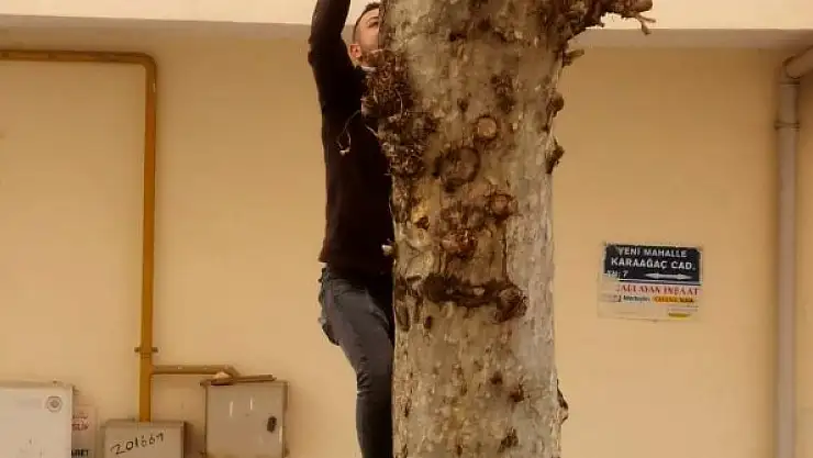 Edinilen bilgiye göre, Yeni Mahalle Karaağaç Caddesi köpekten korkarak çınar ağacına çıkan yavru kedi, aşağıya inemeyince imdadına esnaf yetişti. Kedinin ağaçtan inemediğini fark eden esnaflar kedi için seferber oldu.