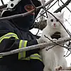 İhbar üzerine olay yerine gelen Düzce Belediyesi itfaiye ekipleri, sepetli merdiven yardımıyla kediyi bulunduğu yerden kurtardı.