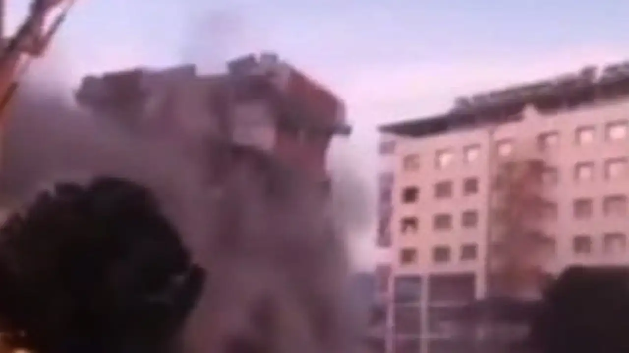 Ağır hasarlı 6 katlı bina yıkılırken çöktü