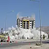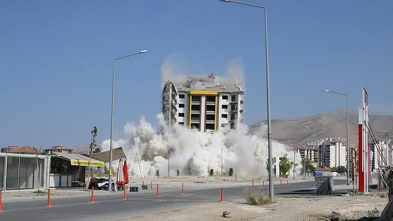 Açıklamanın ardından bina patlatılarak yıkıldı.