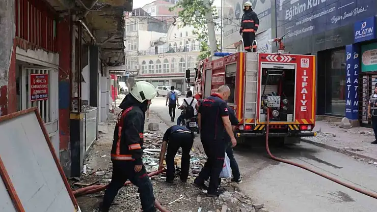 6 Şubat depremlerinde ağır hasar alan binada çıkan yangın, kısa sürede kontrol altına alındı.
