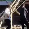 Ağır hasarlı evin yıkımı sırasında balkon çöktü
