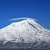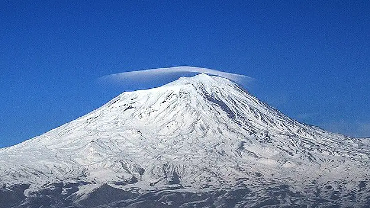 Çevresinde kar ve sisin eksik olmadığı, efsanelere konu olan Ağrı Dağı'nın zirvesinde oluşan ince bulut tabakası, şapkayı andıran görüntüsüyle güzel bir manzara oluşturdu.