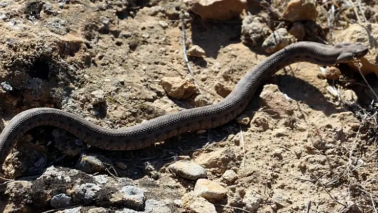 Haber çalışması için Ağrı Dağı'nda bulunan AA ekibi, Koca engerek yılanıyla karşılaştı. AA ekibi, boyu yaklaşık bir metre olan yılanı görüntüledi.