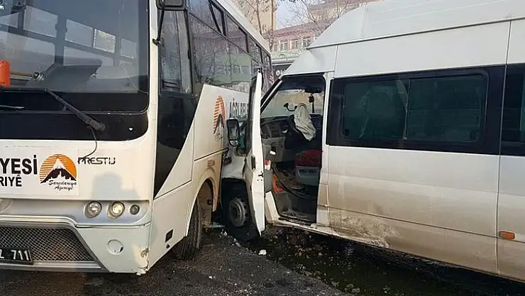 Ağrı'da öğrenci servisi ile belediye otobüsünün çarpışması sonucu 12'si öğrenci 14 kişi yaralandı.