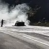 Ağrı'da seyir halindeyken yanan otomobil nedeniyle yol trafiğe kapandı