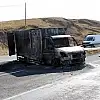 Araçtan indirdikleri sürücüyü bir süre alıkoyan teröristler, kamyoneti benzin dökerek yaktı.