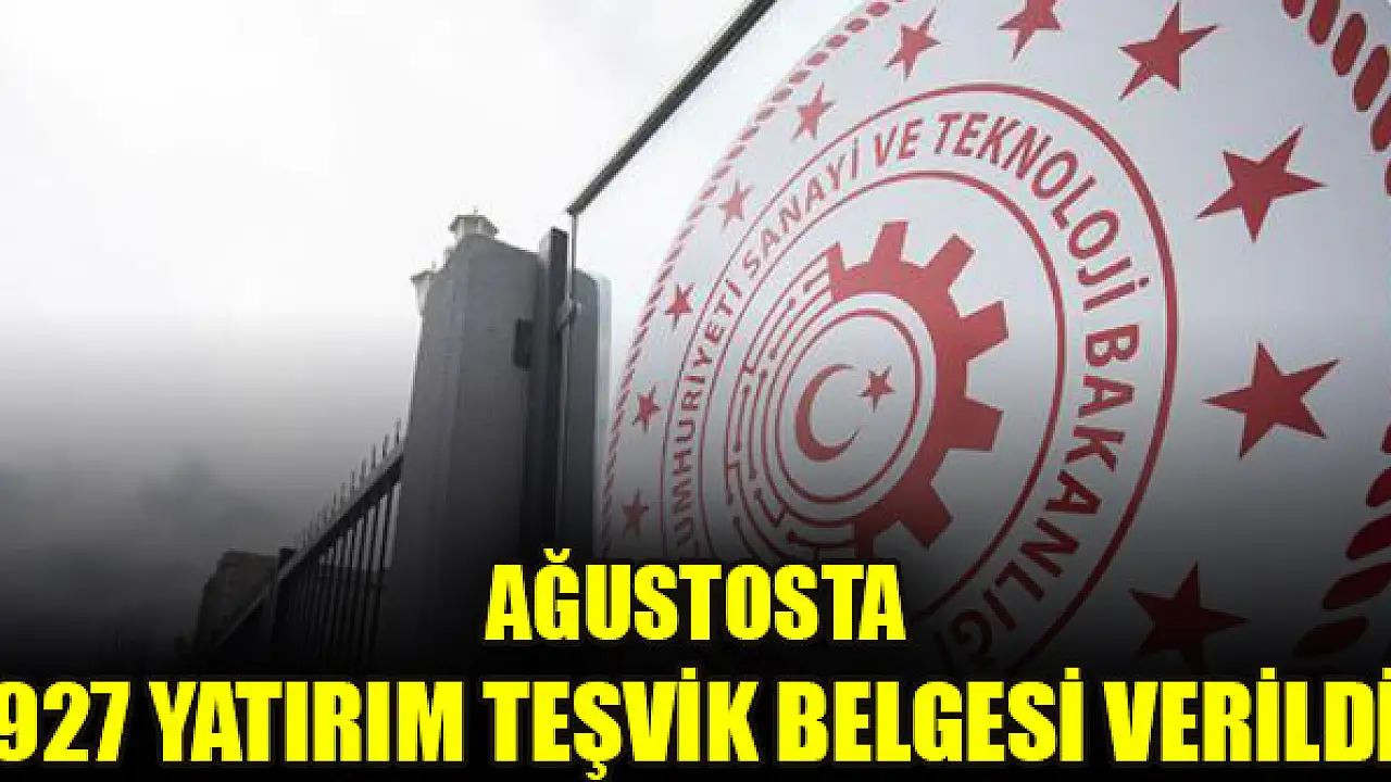 Sanayi ve Teknoloji Bakanlığı, ağustos ayında 927 yatırım teşvik belgesi düzenledi.