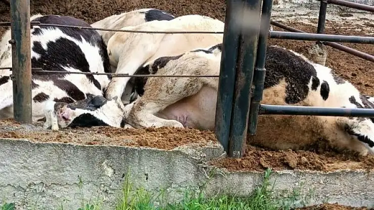 Sabah hayvanlarının bakımını yakmak amacıyla ahıra gelen Hasan Şen, düşen yıldırım sonucu 4 büyükbaş hayvanlarının telef olduğunu gördü ve ardından yetkililerle irtibata geçerek olayla ilgili tutanak tutturdu.