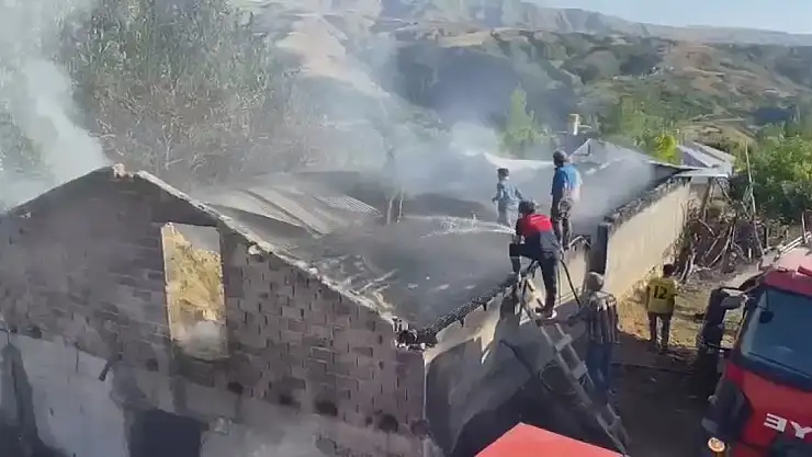 Genç ilçesine bağlı Yiğitbaşı köyündeki bir ahırda, öğleden sonra bilinmeyen nedenle yangın çıktı.